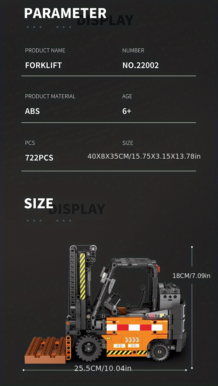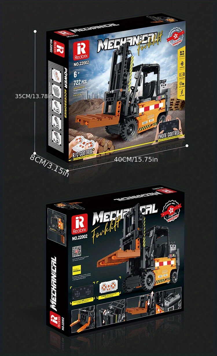 722-teiliges Bausteinset für technische Gabelstaplermodelle – Doppelferngesteuerter Bulldozer, Bagger und Auto – perfektes Dekompressionsgeschenk für Erwachsene!